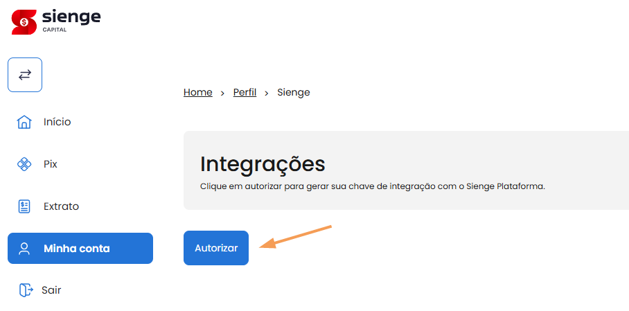 2- Na tela Integrações, localize a opção Autorizar e clique nela.