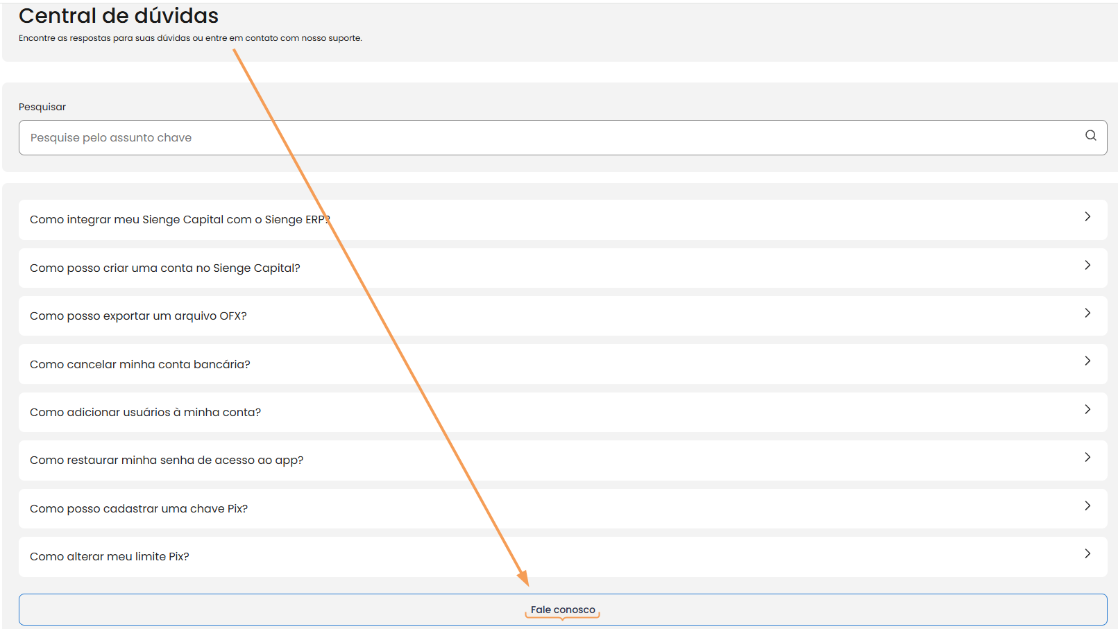 3- Na parte inferior da tela da Central de Dúvidas, localize e selecione a opção Fale Conosco.